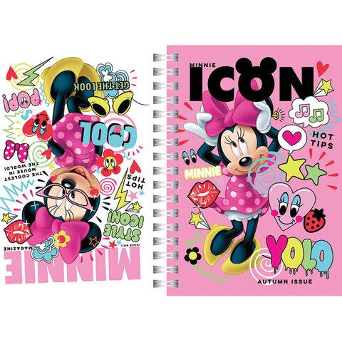 Блокнот МАЛЫЙ ФОРМАТ А6, 160х114 мм, 80 л., твердый, гребень, HATBER, "Минни Маус", 80ЗКтд6В1гр_22466, 80ЗКтд6В1гр2246