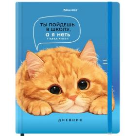 Дневник 1-11 класс 48 л., твердый, BRAUBERG, матовая ламинация, резинка, закладка-ляссе, с подсказом, "Котик", 107239
