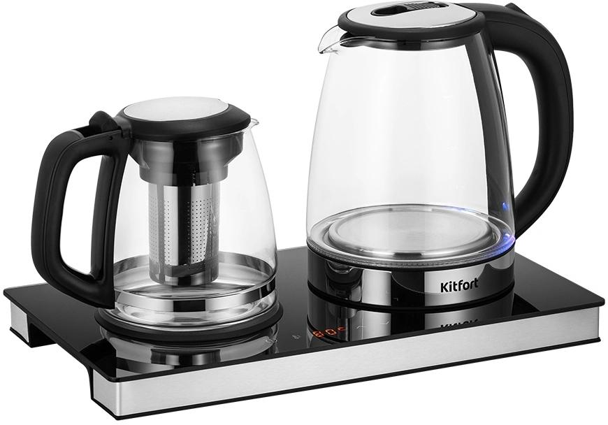 Чайный набор Kitfort КТ-6737 2л. 1530Вт черный / нержавеющая сталь корпус: Металл / стекло / пластик