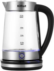 Чайник электрический Kitfort КТ-6764 2.2л. 1800Вт черный / серебристый корпус: стекло / металл / пластик (KT-6764)