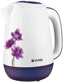 Чайник электрический Vitek VT-7061 1.7л. 2200Вт белый с узором / фиолетовый корпус: пластик (7061-VT-01)