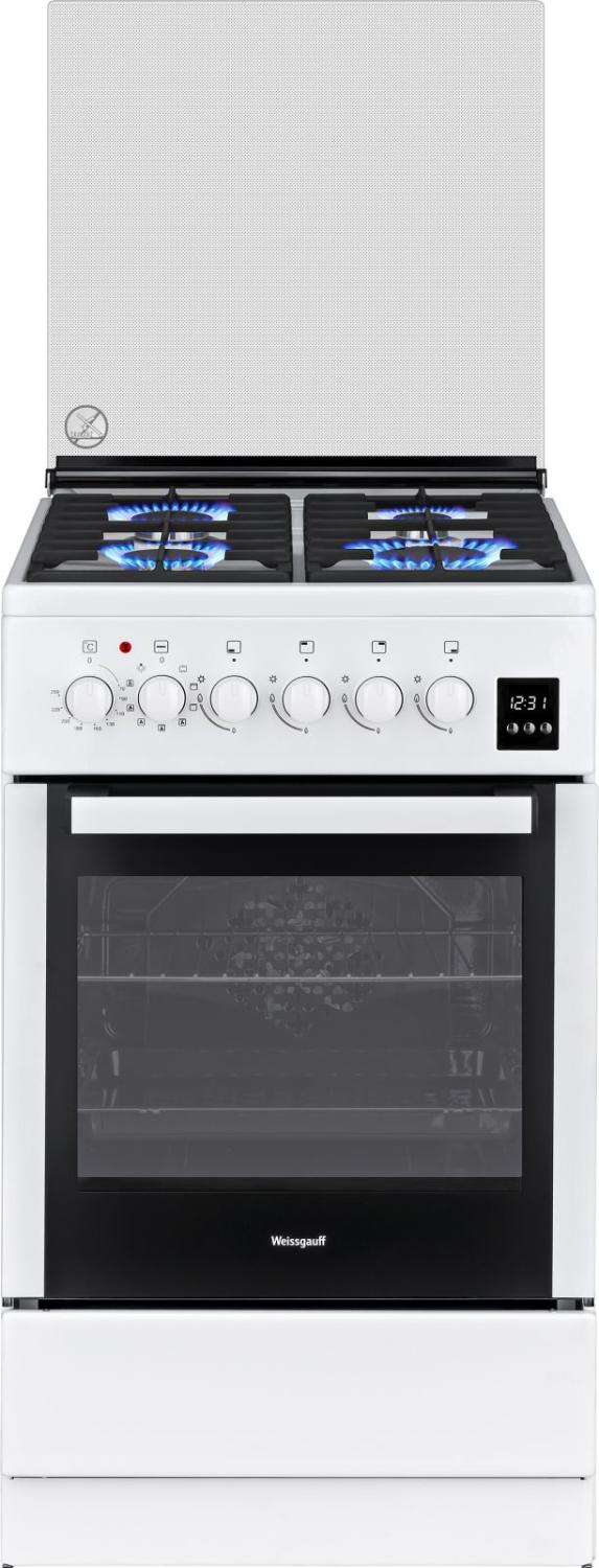 Плита Комбинированная Weissgauff WCS K2K59 WGE белый / черный (стеклянная крышка) реш.чугун