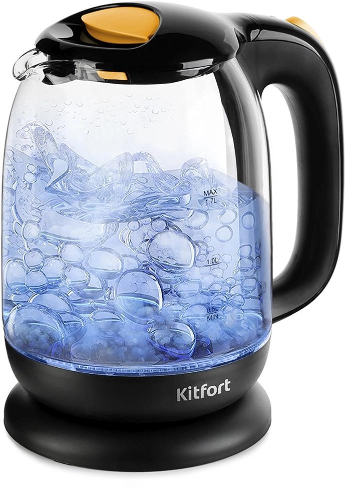 Чайник электрический Kitfort КТ-625-4 1.7л. 2200Вт черный / желтый корпус: стекло / пластик