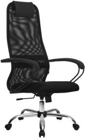 Кресло Метта SU-B-8 черный сиденье черный сетка / ткань с подголов. крестов. металл хром