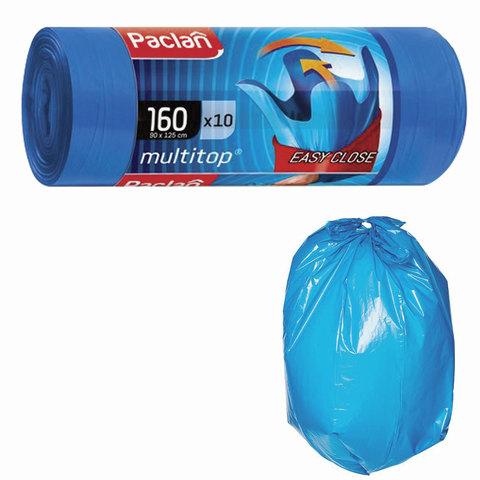 Мешки для мусора 160 л, с ушками, синие, рулон 10 шт., ПВД, 30 мкм, 90х125 см, PACLAN "Multitop", 134442