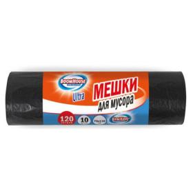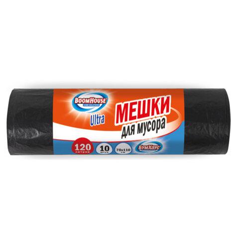 Мешки для мусора 120 л, черные, в рулоне 10 штук, особо прочные, ПВД 50 мкм, 70x110 см, серия ULTRA, BOOMHOUSE (БУМХАУС), 702666