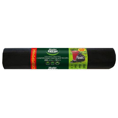 Мешки для мусора 200 л, XXXL, суперпрочные, черные, 34 мкм, 10 шт., Master FRESH