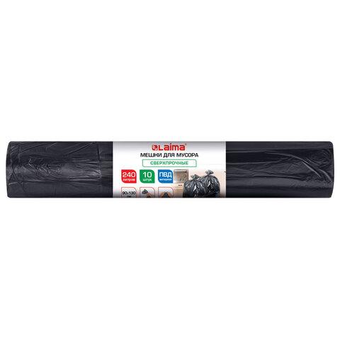 Мешки для мусора 240 л, черные в рулоне 10 штук сверхпрочные, ПВД 70 мкм, 90x130 см, LAIMA, 702678