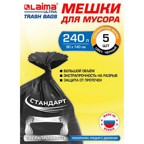 Мешки для мусора LAIMA "ULTRA", 240 л, черные, рулон 5 шт., сверхпрочные, ПСД, 120 мкм, 90х140 см, 607698