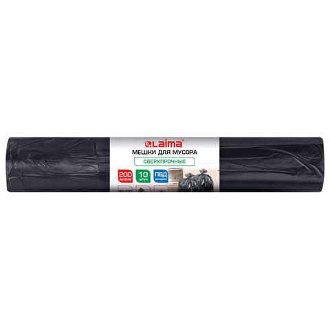 Мешки для мусора 200 л, черные в рулоне 10 штук сверхпрочные, ПВД 80 мкм, 90x130 см, LAIMA, 702677