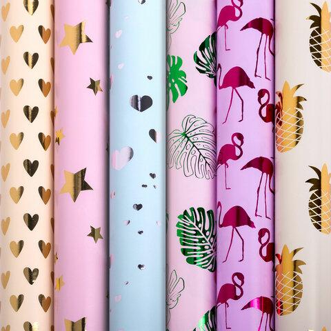 Бумага упаковочная подарочная С ЭФФЕКТАМИ "Romantic", 70х100 см, 6 дизайнов ассорти, ЗОЛОТАЯ СКАЗКА, 591943