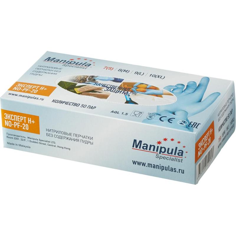 Перчатки одноразовые нитрил Manipula Эксперт (DG-022), р-р S, 100шт / уп, ПС