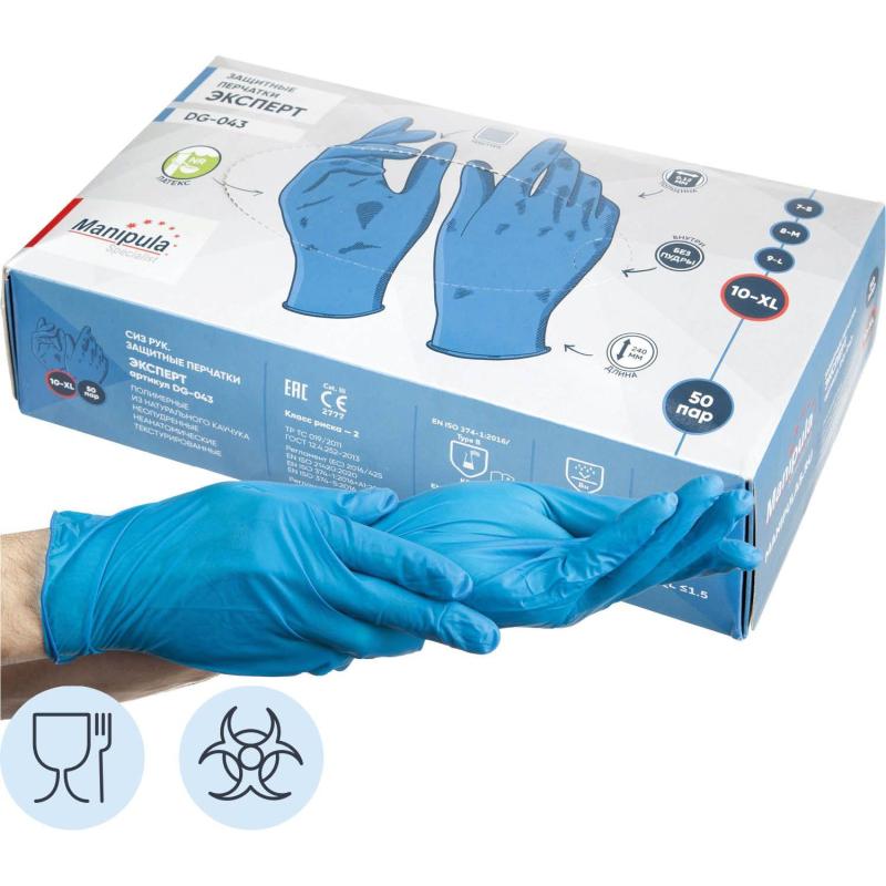 Перчатки защит. однораз. латекс Manipula ЭКСПЕРТ DG-043, 50 пар / уп р.9,ПС