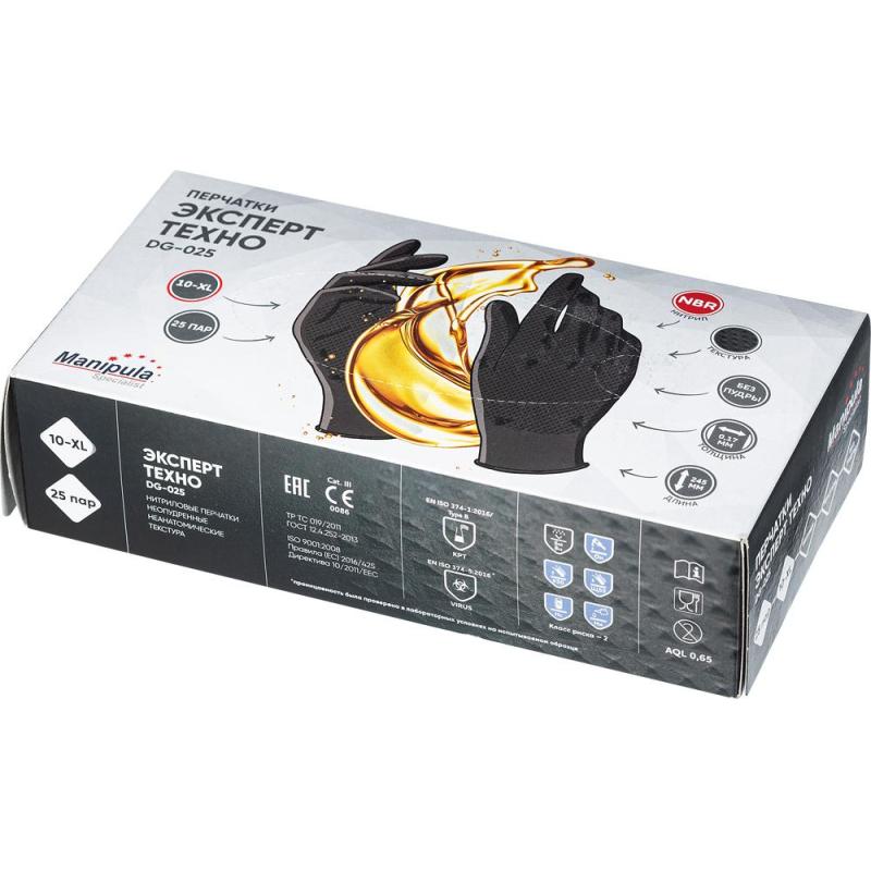 Перчатки однораз. нитрил Manipula ЭКСПЕРТ ТЕХНО чер (DG-025) р10 50шт / уп,ПС