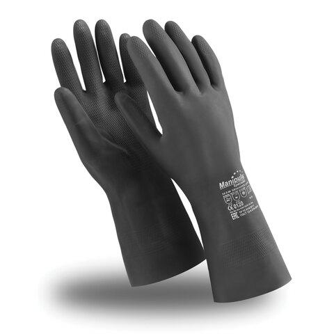 Перчатки неопреновые MANIPULA ХИМОПРЕН, хлопчатобумажное напыление, К80 / Щ50, размер 8-8,5, M (средний), черные, CG-973