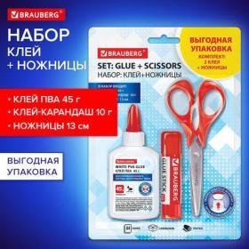 Набор: клей + ножницы BRAUBERG (клей-карандаш PVP 10 г, клей ПВА 45 г, ножницы 13 см), блистер, 271979
