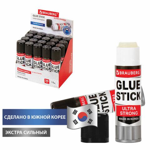 Клей-карандаш BRAUBERG ULTRA STRONG, УСИЛЕННАЯ ФОРМУЛА, 15 г, ЮЖНАЯ КОРЕЯ, 229545