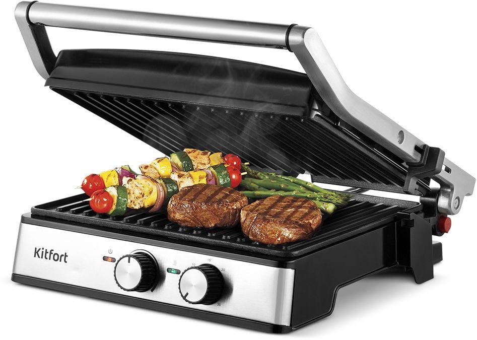 Электрогриль Kitfort КТ-3675 2000Вт серебристый / черный