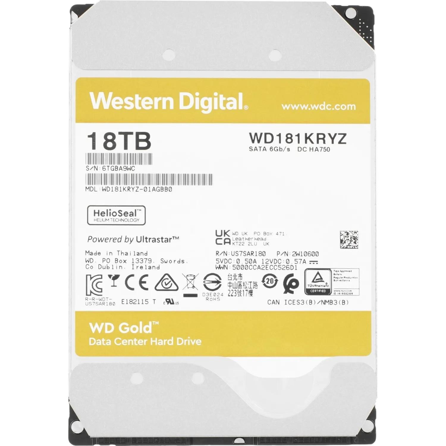 Жесткий диск WD SATA-III 18TB WD181KRYZ Gold 512E / 7200rpm / 512Mb
