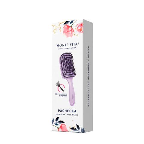 Расческа для волос массажная, 24x7,5 см, с натуральной щетиной, фиолетовая, MONTE VITA (МОНТЕ ВИТА), 457422