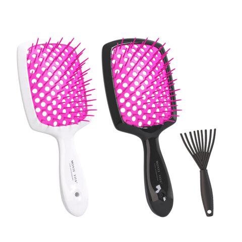 Расческа для волос массажная 22х7 см, НАБОР 2 шт. + щетка для чистки В ПОДАРОК, MONTE VITA (МОНТЕ ВИТА), 457435