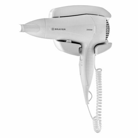 Фен для волос настенный BRAYER BR3021BK, 2000 Вт, пластик, 2 скорости, 2 температурных режима, черный