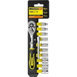 Набор STAYER "STANDARD": Торцовые головки (1 / 4") на пластиковом рельсе, трещотка, удлинитель, 4-13мм, 12 предметов [27754-H12]
