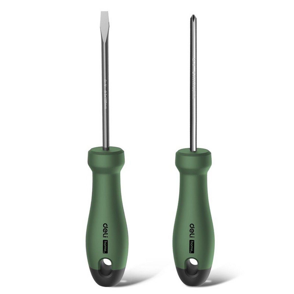 Набор отверток "Home Series Green" Deli HT1002L 2шт SL5x100+PH1x100, эксклюзивный дизайн, рукоятка из высококачественного софттач пластика