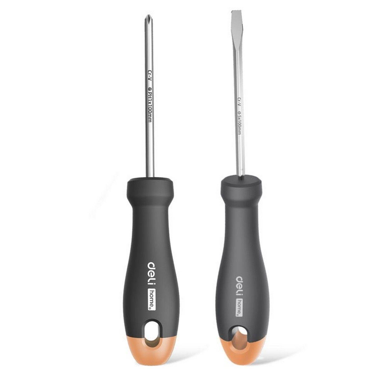 Набор отверток "Home Series Gray" Deli HT1002C 2шт SL5x100+PH1x100, эксклюзивный дизайн, рукоятка из высококачественного софттач пластика