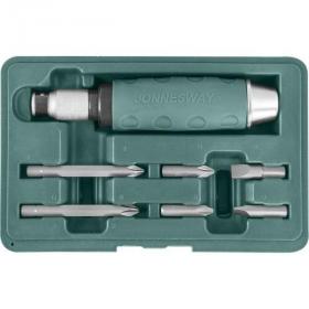 JONNESWAY (AG010055A) Ударная отвертка с битами SL 8,10мм PH# 2,3 36мм и PH# 2,3 80мм, 7 предметов