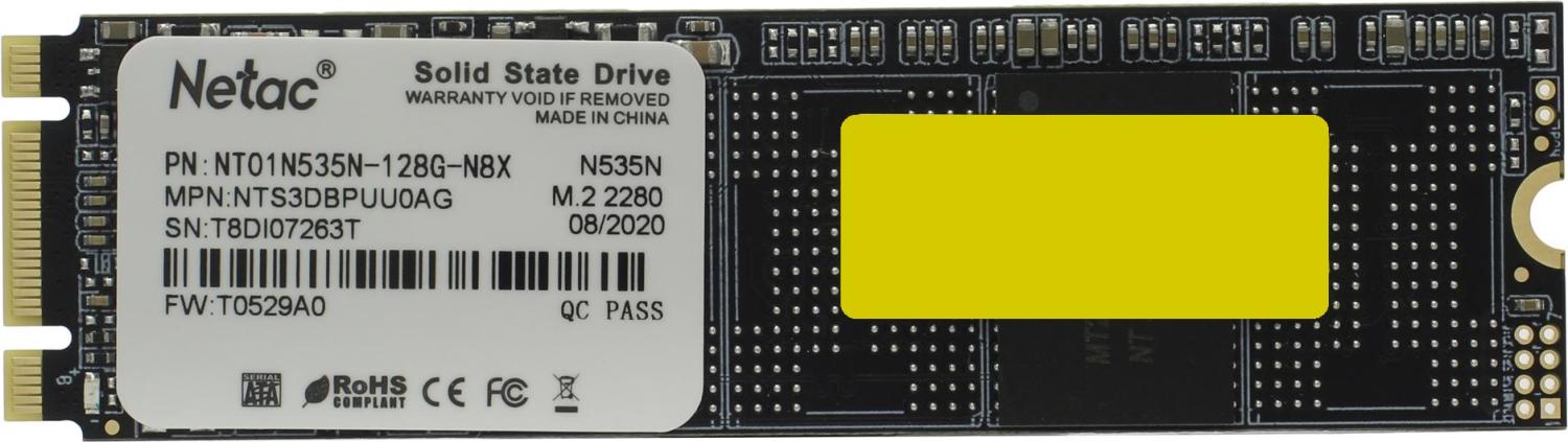 Твердотельный накопитель SSD M.2 Netac 128Gb N535N Series <NT01N535N-128G-N8X> Retail (SATA3, up to 510 / 440MBs, 3D TLC, 22х80mm)