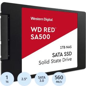 Твердотельные накопители WD SSD Red SA500 NAS, 1000GB, 2.5" 7mm, SATA3, R / W 560 / 530MB / s, IOPs 95 000 / 85 000, DRAM buffer, TBW 600, DWPD 0.4 (12 мес.)