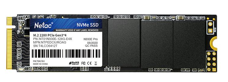 SSD накопитель Netac SSD N930E Pro 128GB PCIe 3 x4 M.2 2280 NVMe 3D NAND, R / W up to 970 / 650MB / s, IOPS(R4K) 100K / 130K, TBW 75TB, 3y wty
