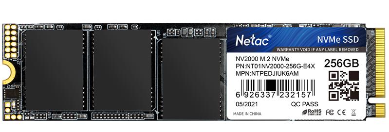 SSD накопитель Netac SSD NV2000 256GB PCIe 3 x4 M.2 2280 NVMe 3D NAND, R / W up to 2500 / 1000MB / s, IOPS(R4K) 130K / 220K, TBW 150TB, 5y wty