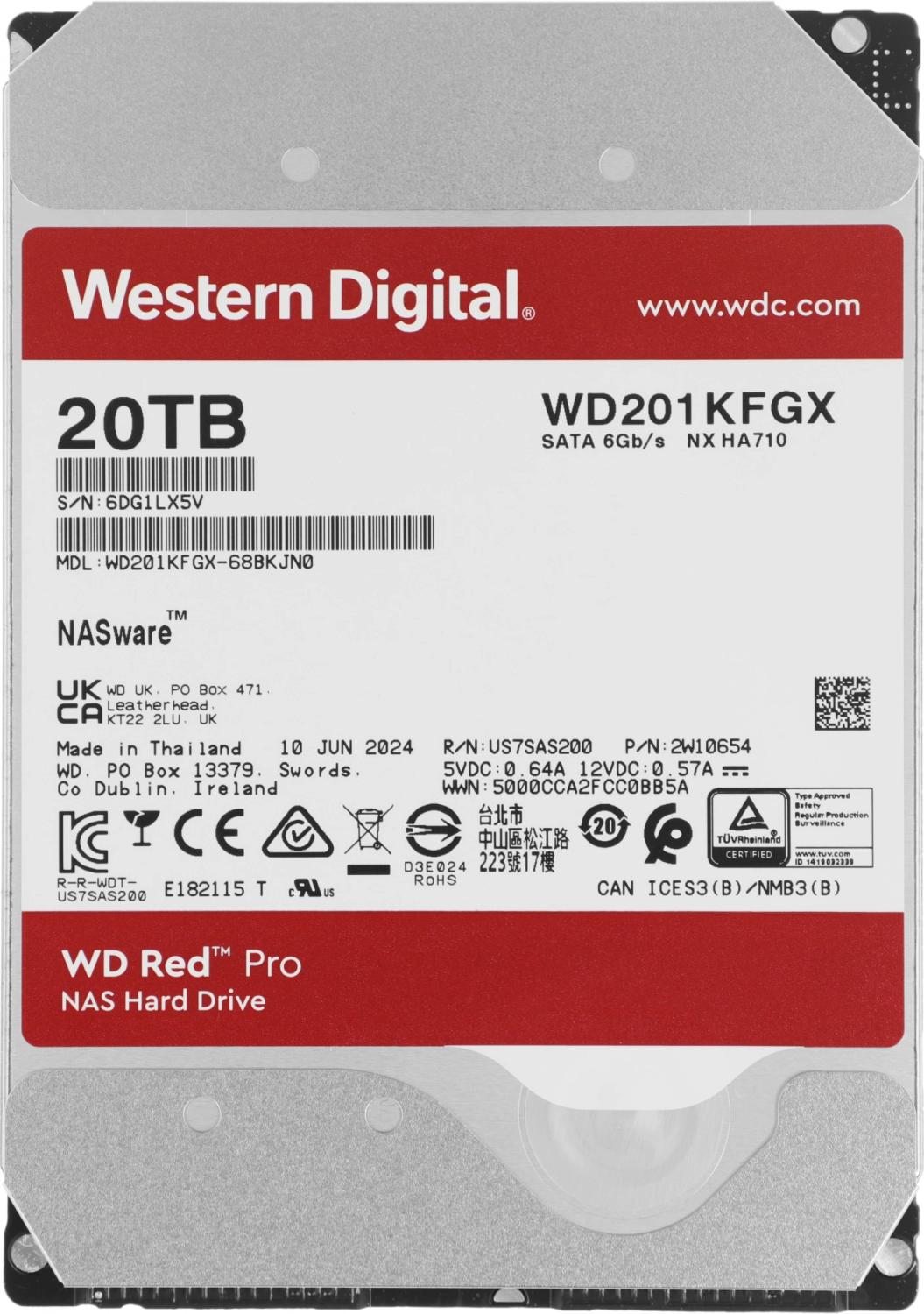 Жесткий диск WD SATA-III 20TB WD201KFGX NAS Red Pro (7200rpm) 512Mb 3.5"