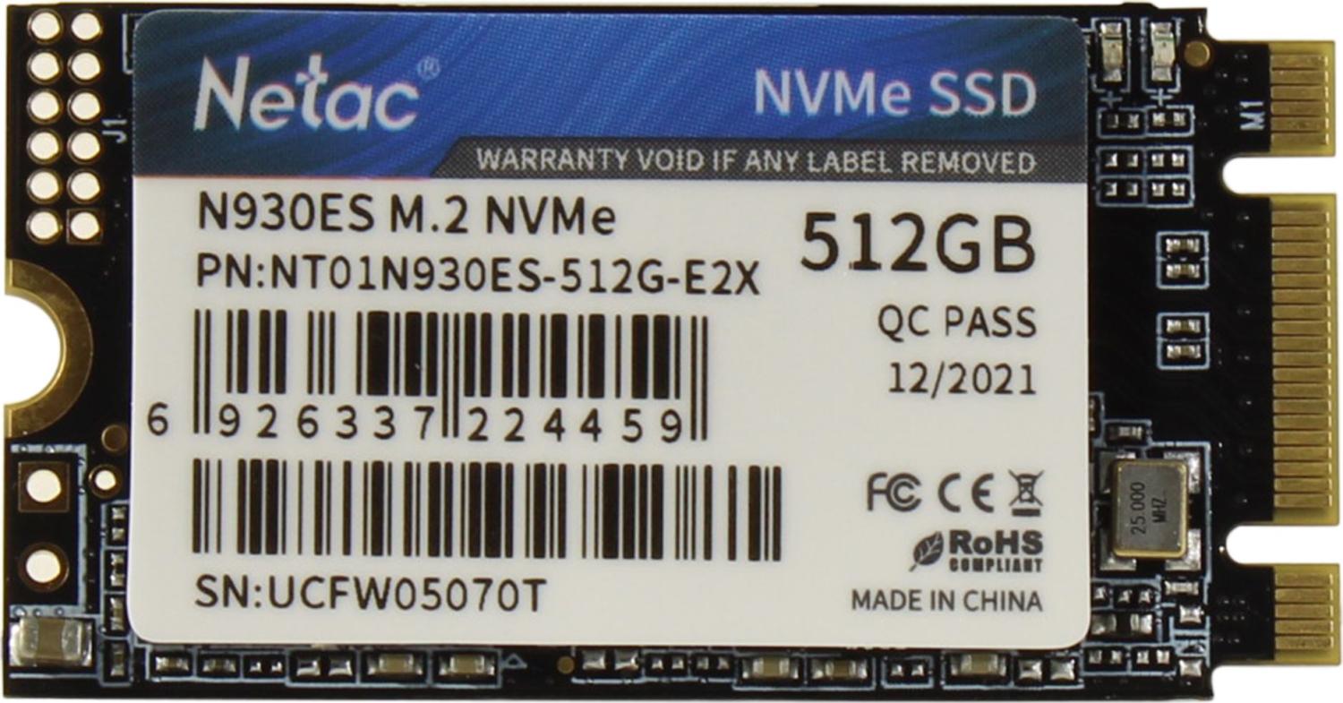 Твердотельный накопитель SSD M.2 2242 Netac 512Gb N930ES Series <NT01N930ES-512G-E2X> Retail (PCI-E 3.1 x2, up to 1650 / 1500MBs, 3D TLC, NVMe 1.3, 22х42mm)