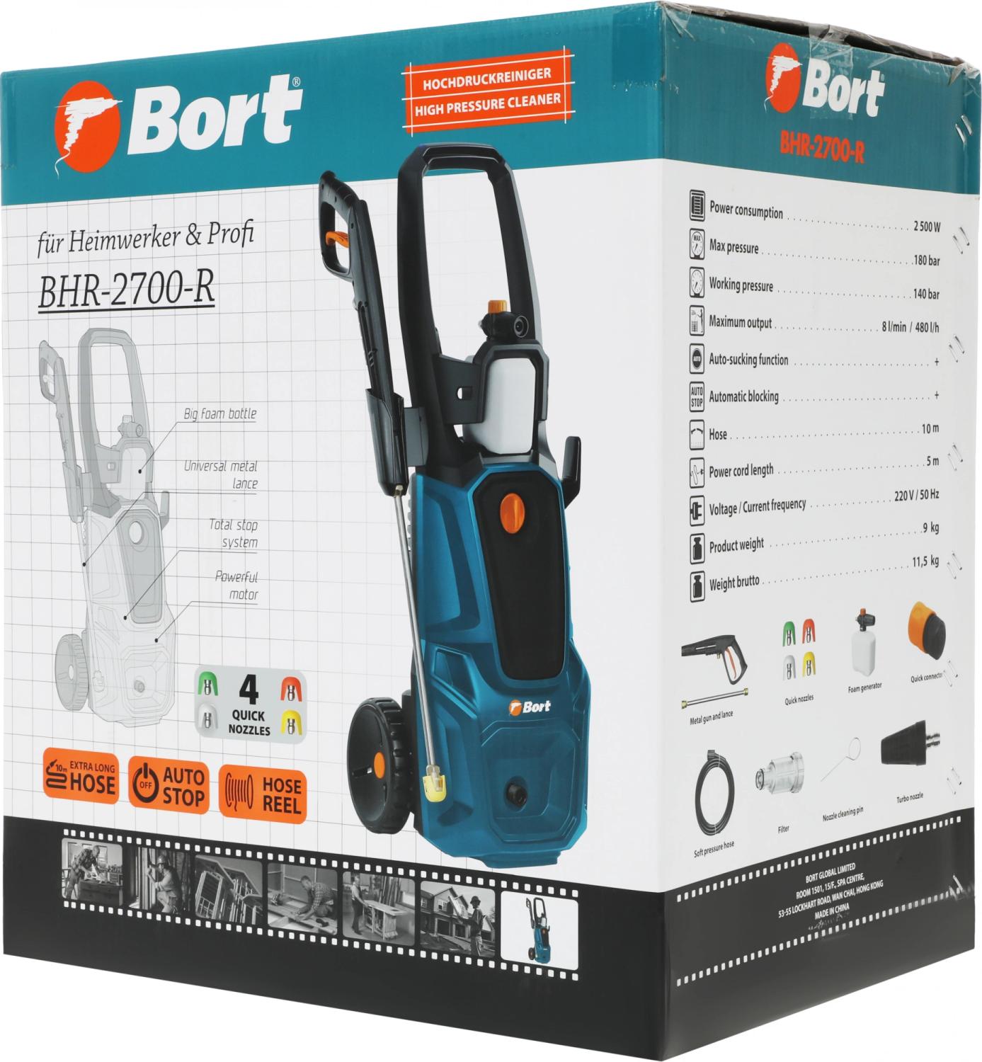 Bort BHR-2700-PRO Мойка высокого давления [93416121] { 2500 Вт, максимальное давление 180 бар, рабочее давление 140 бар, 8 л / мин, 8,9 кг, набор аксессуаров 10 шт }