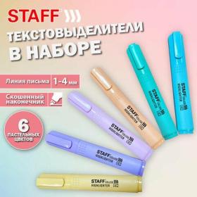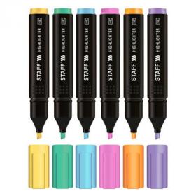 Набор текстовыделителей 6 ПАСТЕЛЬНЫХ ЦВЕТОВ, АССОРТИ, STAFF College "STICK PASTEL", линия письма 1-4 мм, скошенный наконечник, 152532