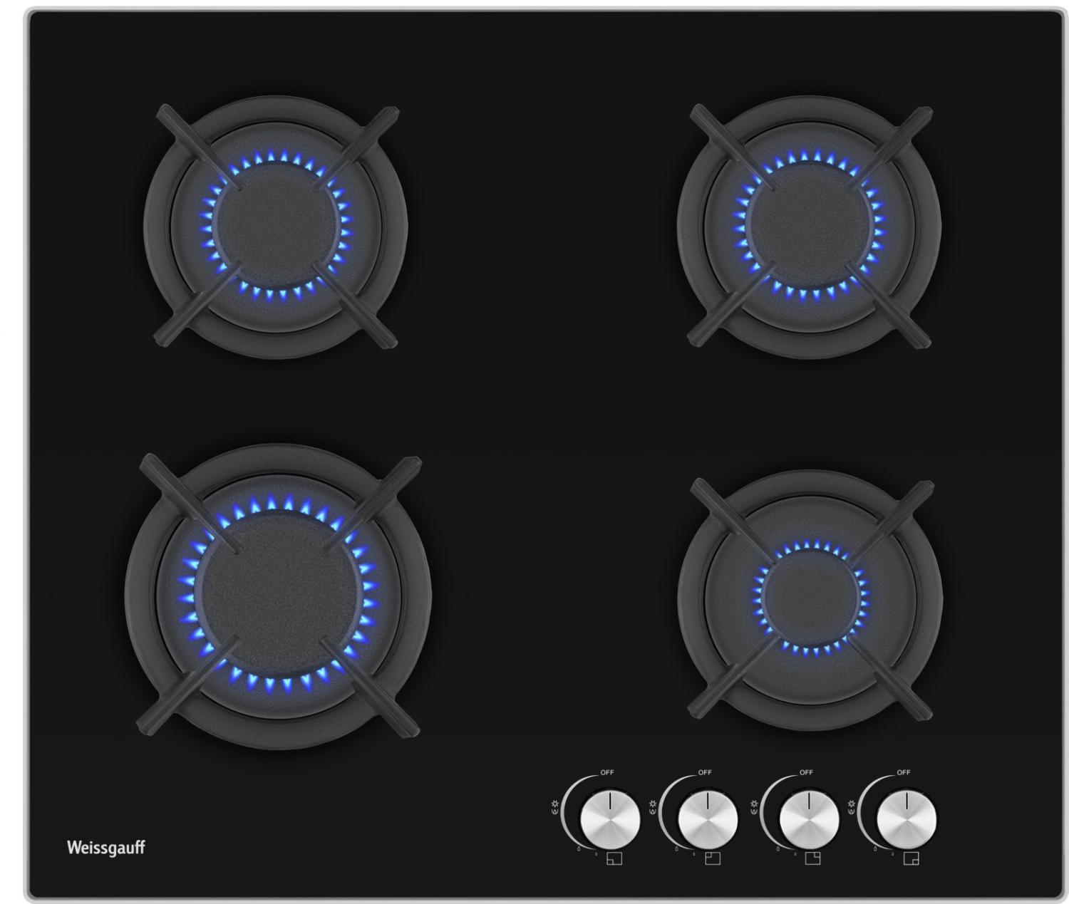 Газовая варочная поверхность Weissgauff HG 430 BGH черный