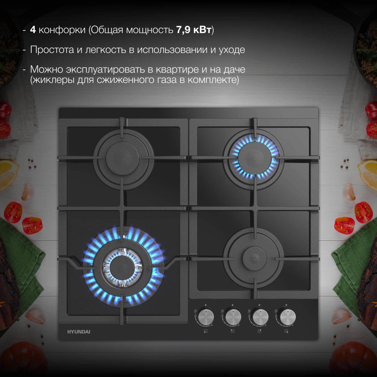 Газовая варочная поверхность Hyundai HHG 6434 BG черный