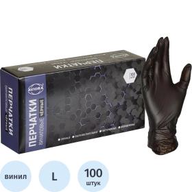 Перчатки однораз. виниловые, н / о, черн. AVIORA (L) 50п / уп 5,5гр 402-736 ПС