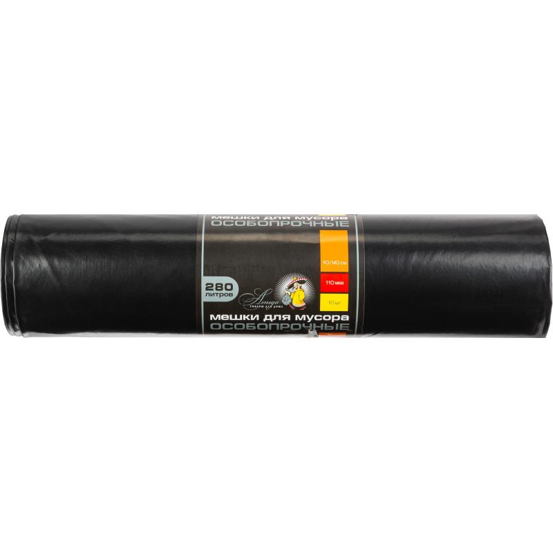 Мешки для мусора ПВД 280л 110мкм 10шт / рул черные 90x140см Amigo