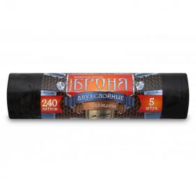 Мешки для мусора ПВД 240л 55мкм 5шт / рул черн 110х115см, Броня, с завязк
