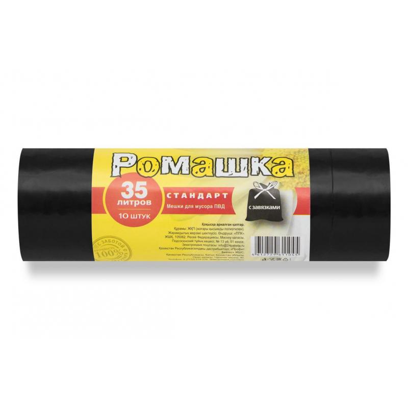 Мешки для мусора с завязками 35 л, в рулоне 15 шт., ПСД 18 мкм, 50x53 см, РОМАШКА НАДЕЖНЫЕ, ВЗ0351511