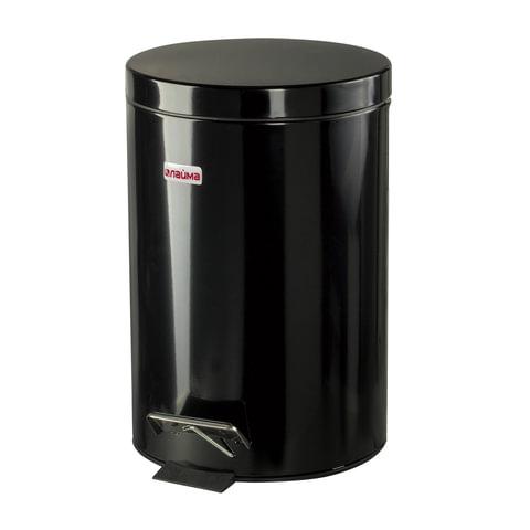 Ведро мусорное с педалью 12 литров "Classic", ЧЕРНОЕ ГЛЯНЦЕВОЕ, металлическое, со съемным внутренним ведром, LAIMA, 602850