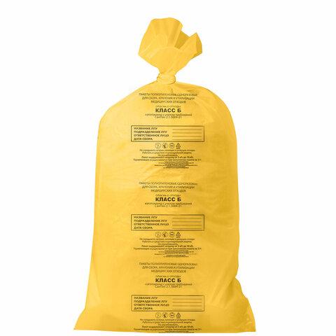 Пакеты для медицинских отходов КОМПЛЕКТ 100 шт., класс Б (желтые) 30 л, 50х60 см, 10 мкм, ПТП "Киль"