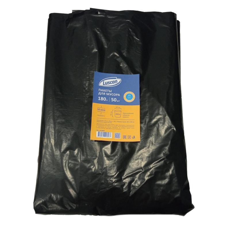 Мешки для мусора ПВД 180л 50мкм 50шт / уп черные 90x120см Luscan