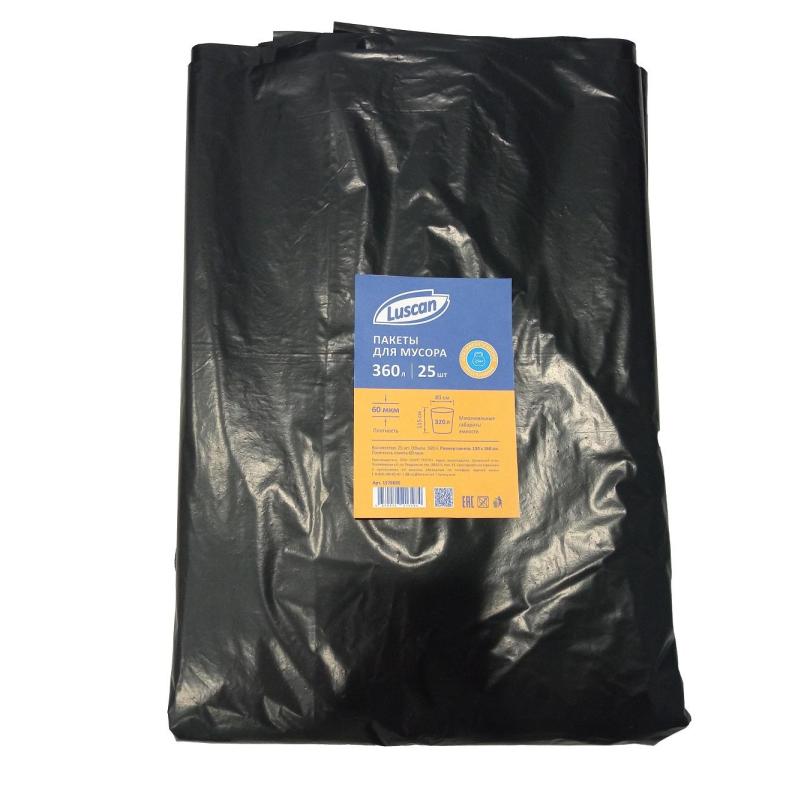 Мешки для мусора ПВД 360л 60мкм 25шт / уп черные 130x160см Luscan