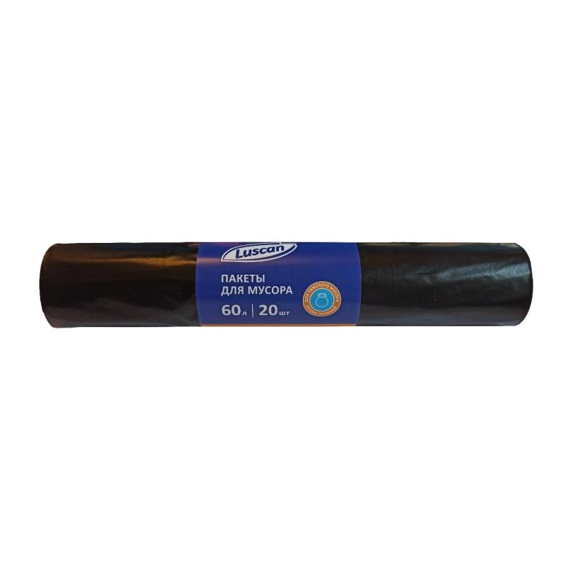 Мешки для мусора ПВД 60л 35мкм 20шт / рул черн 60x70см с ручками Luscan