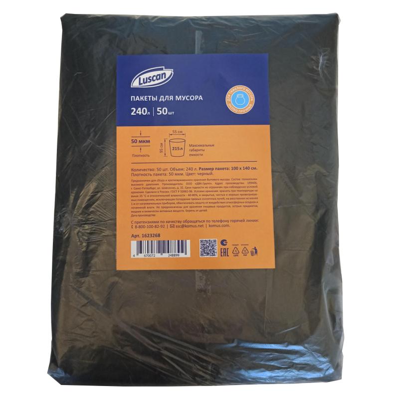 Мешки для мусора ПВД 240л 100х140см 50мкм черные 50шт / уп Luscan